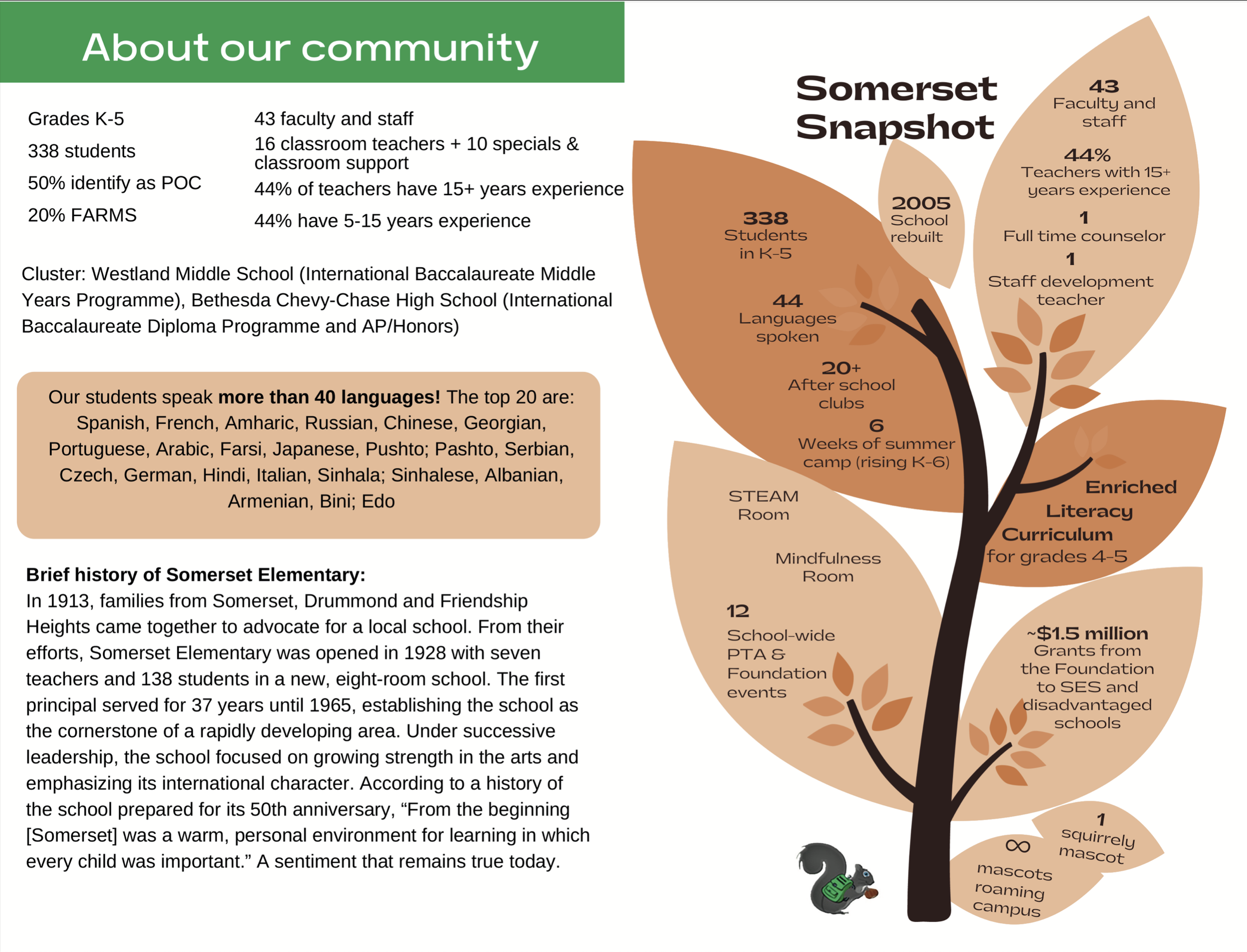 Tours are a great way to learn about the school, meet people, and understand what to expect in your first year. The PTA will try and accommodate tour requests for new or prospective families.